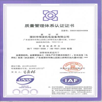 質量管理體系認證證書