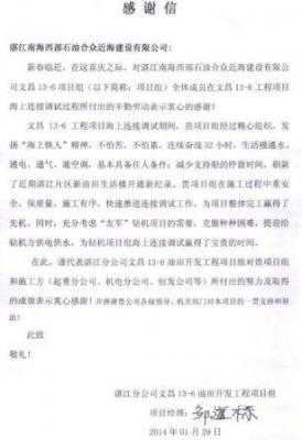 2014年湛江合眾公司潿洲項(xiàng)目感謝