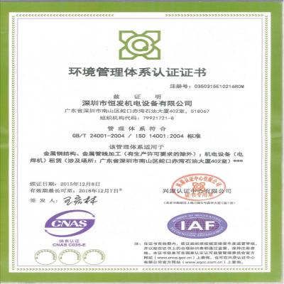 環(huán)境管理體系認(rèn)證證書